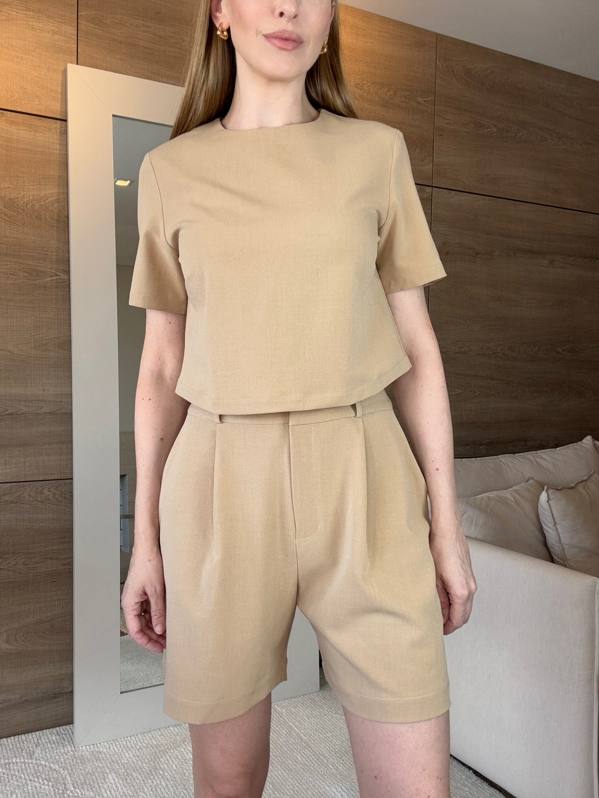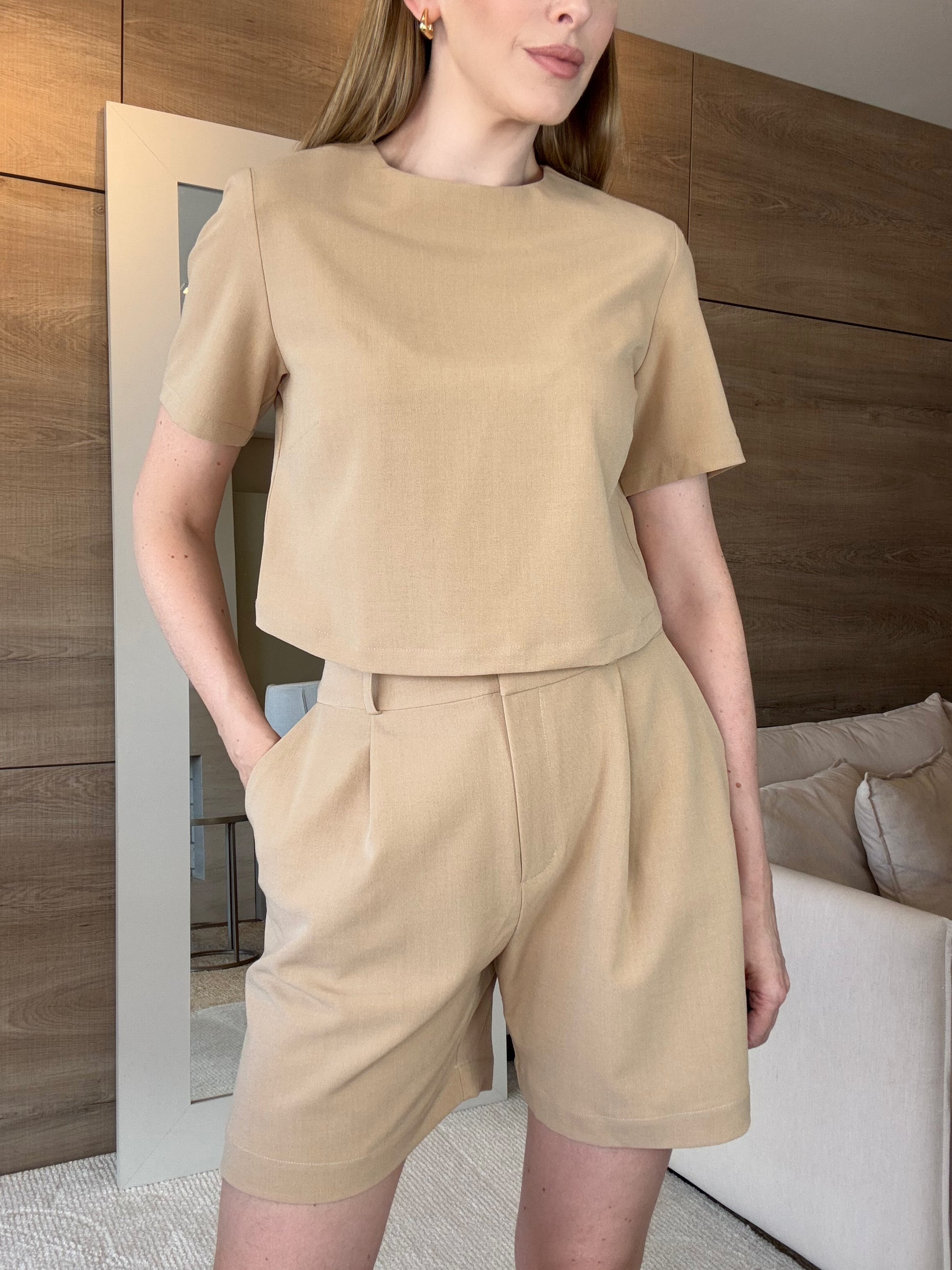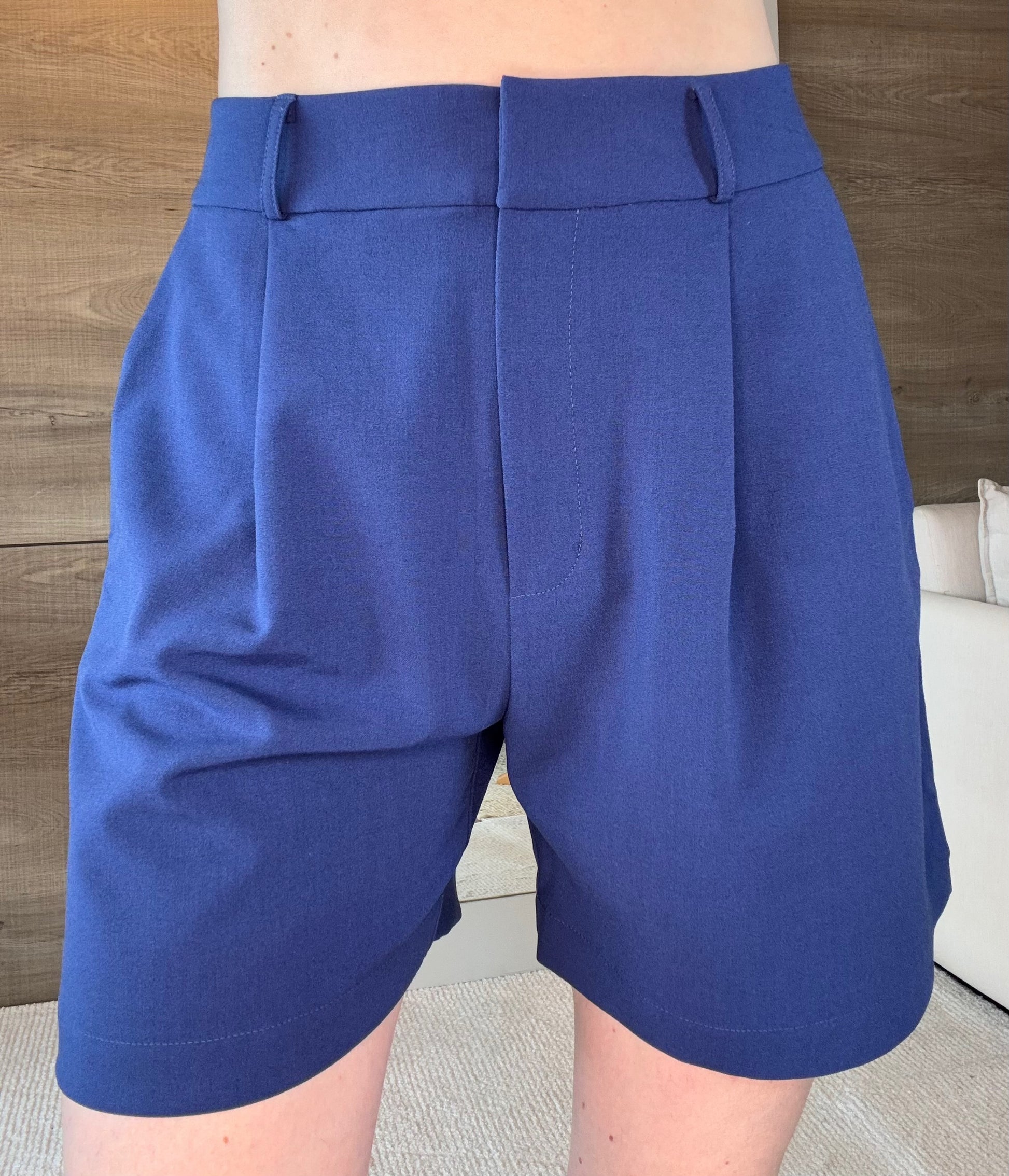 Bermuda com pregas e bolso faca, confeccionada em um tecido maleável e confortável.