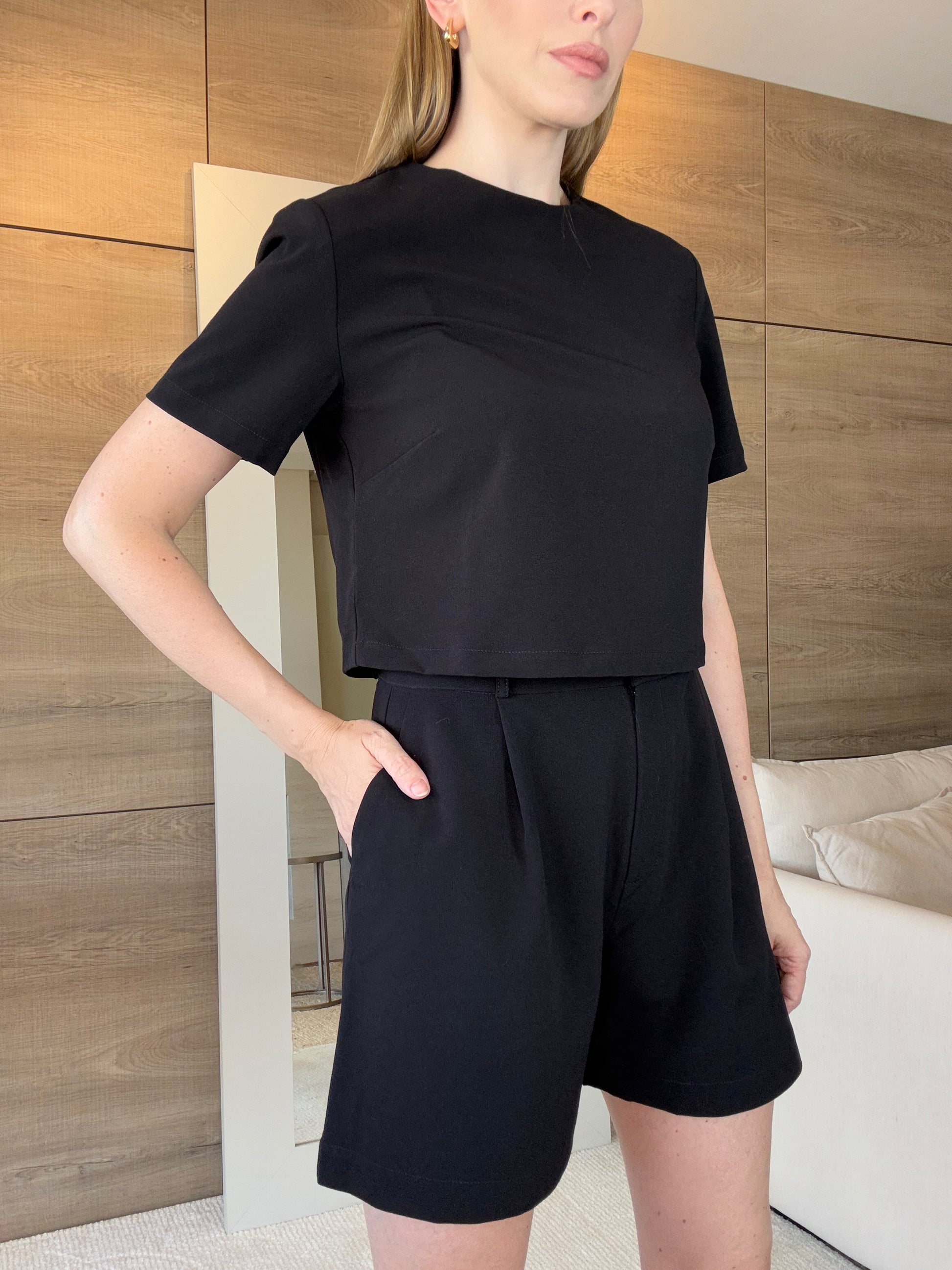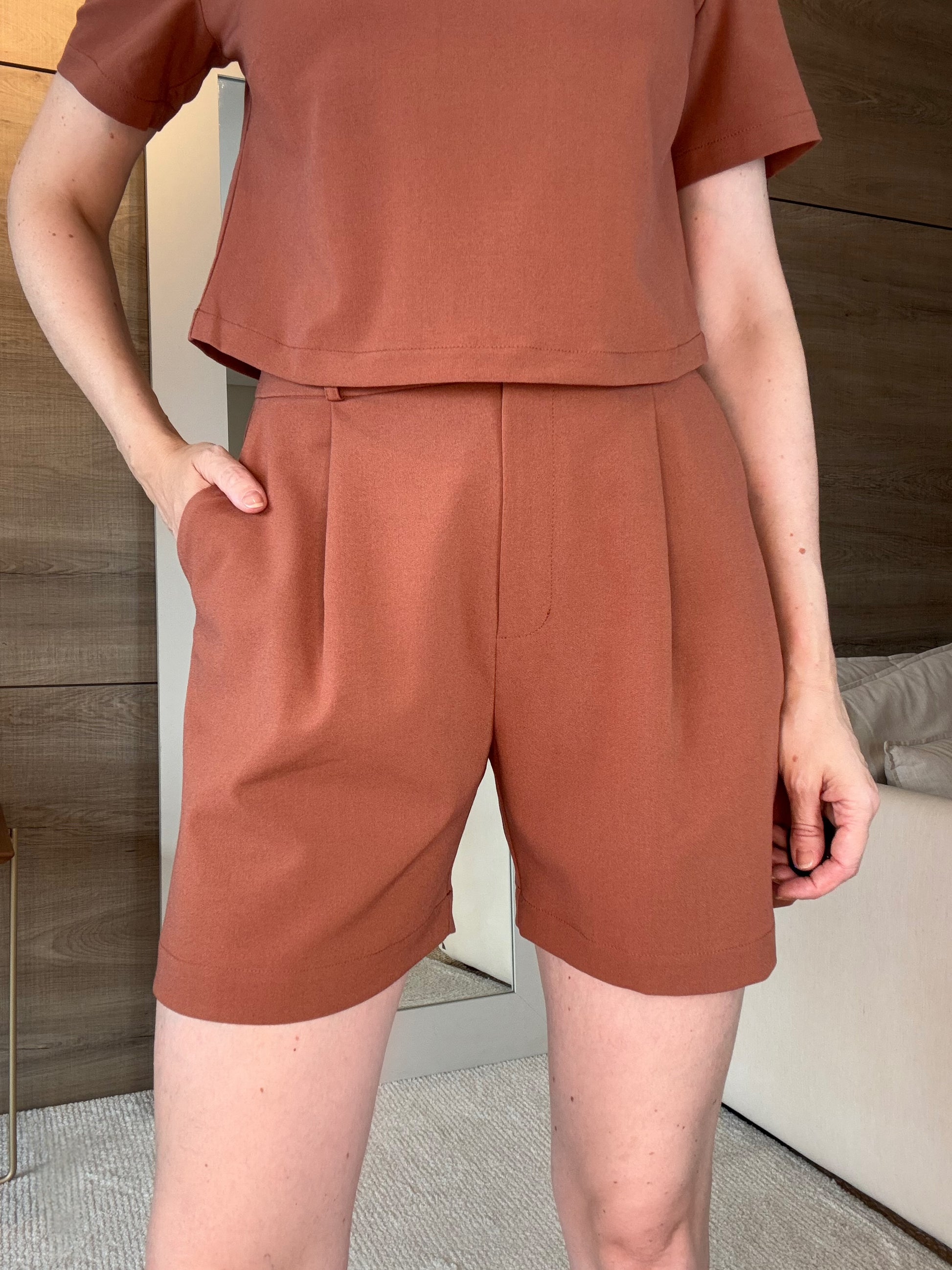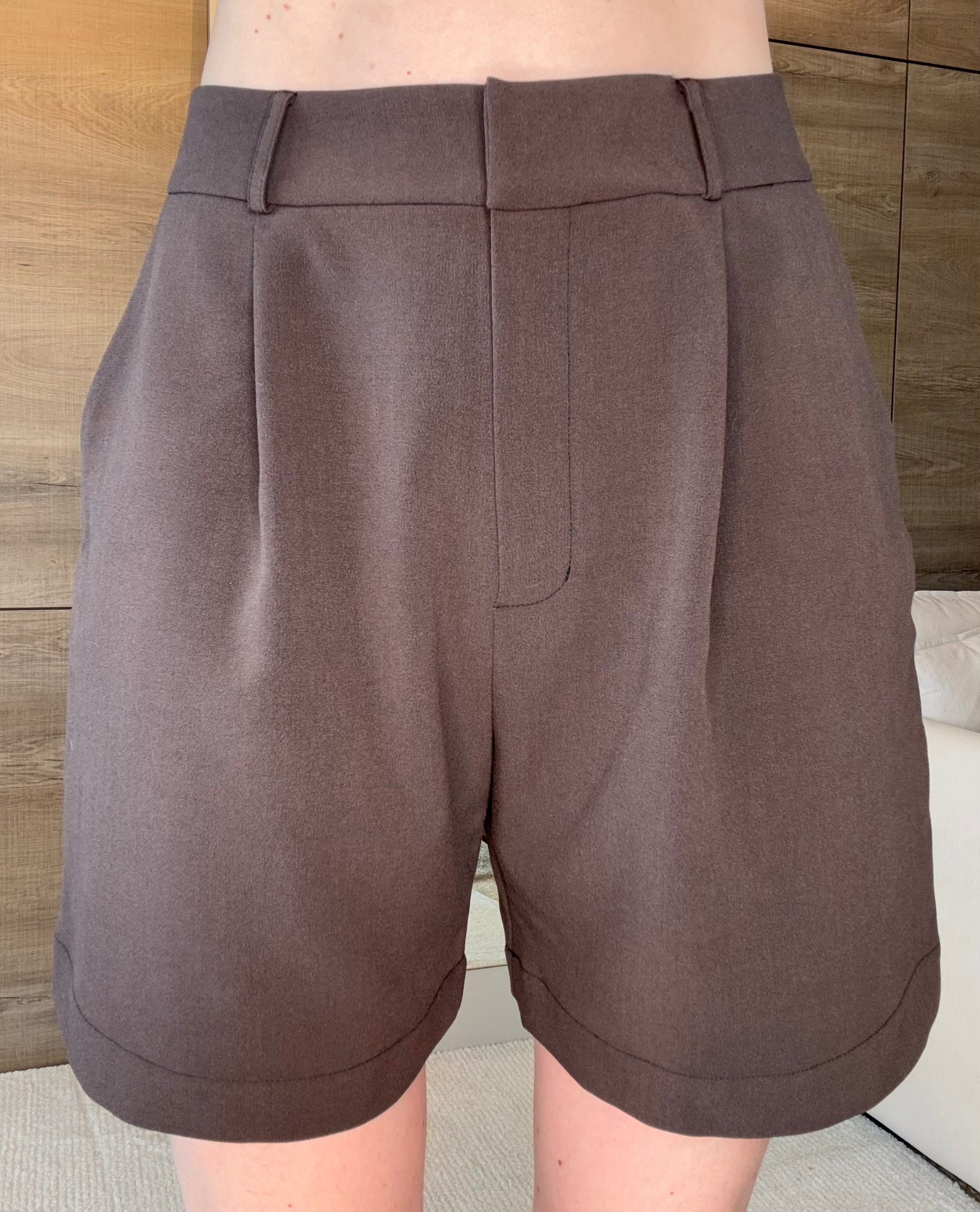 Bermuda com pregas e bolso faca, confeccionada em um tecido maleável e confortável.